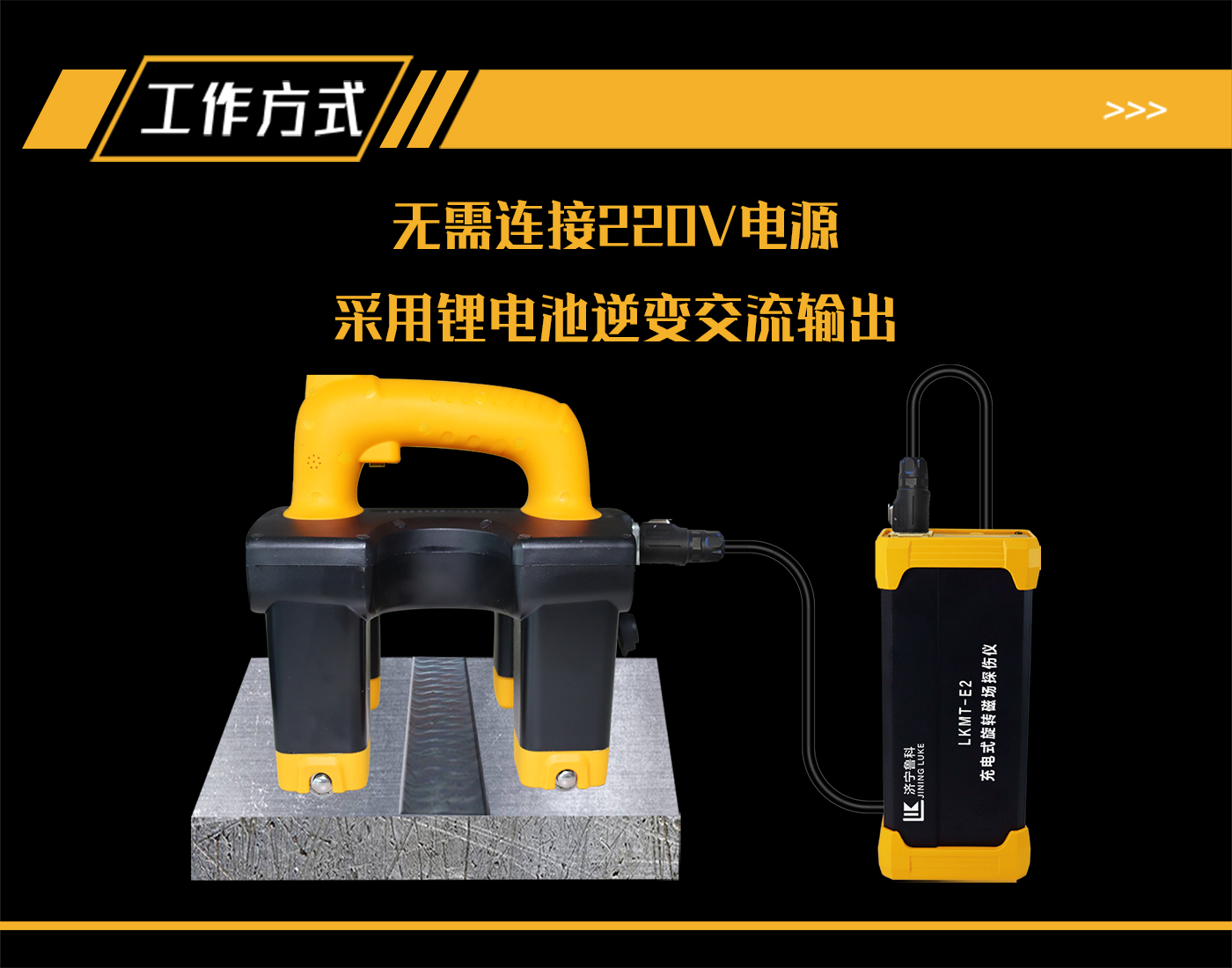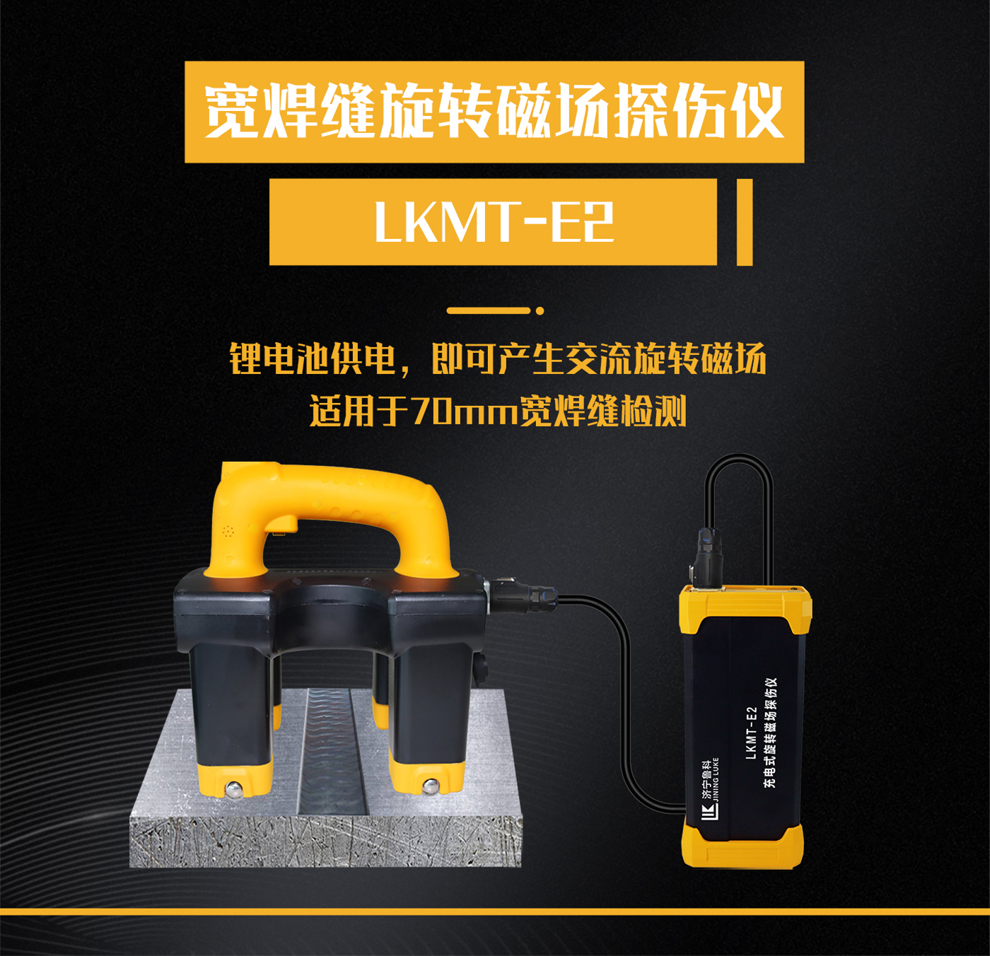 1、LKMT-E2寬焊縫旋轉磁場探傷儀,采用鋰電池電源供電,無需外接110V或220V電源即可產生交流旋轉磁場進行探傷。